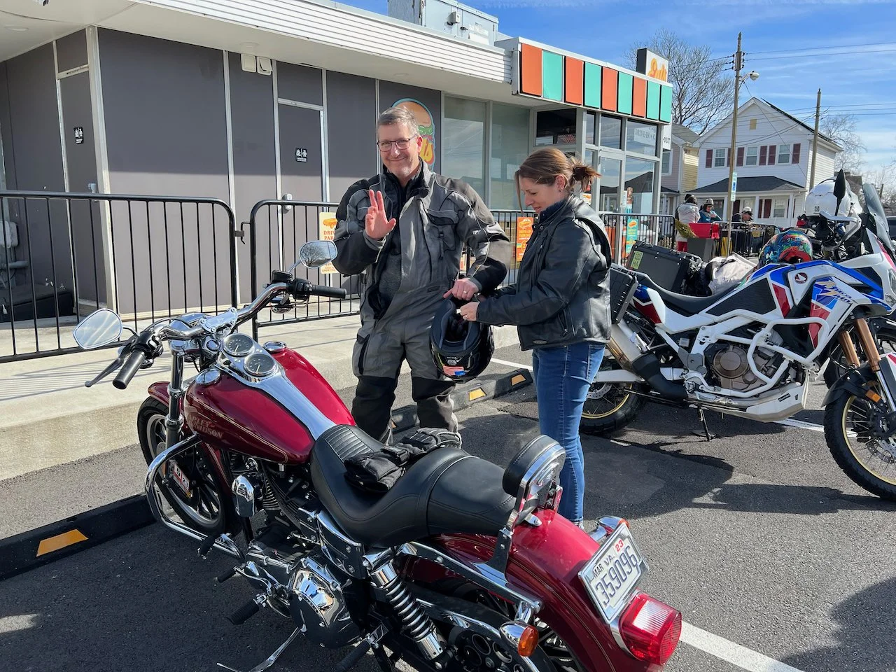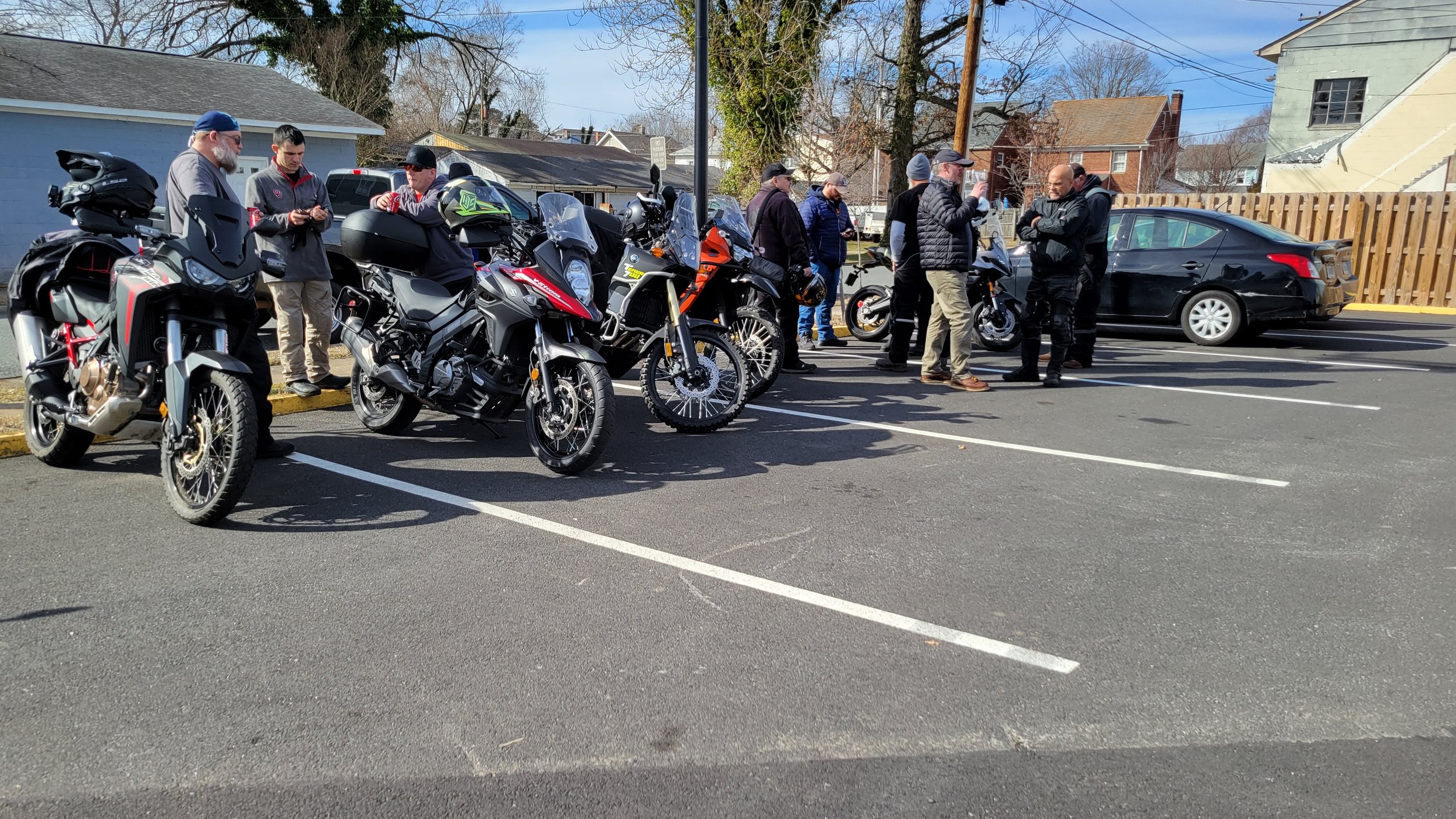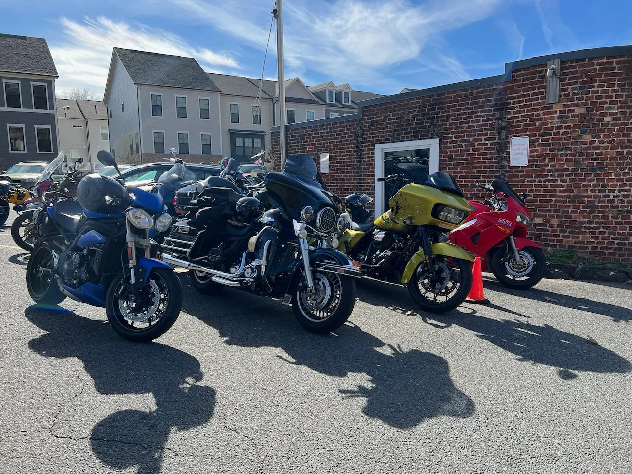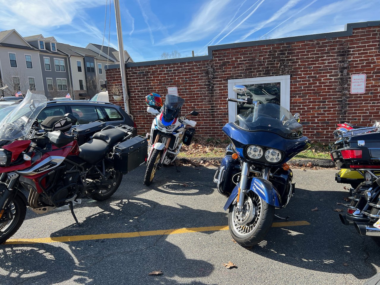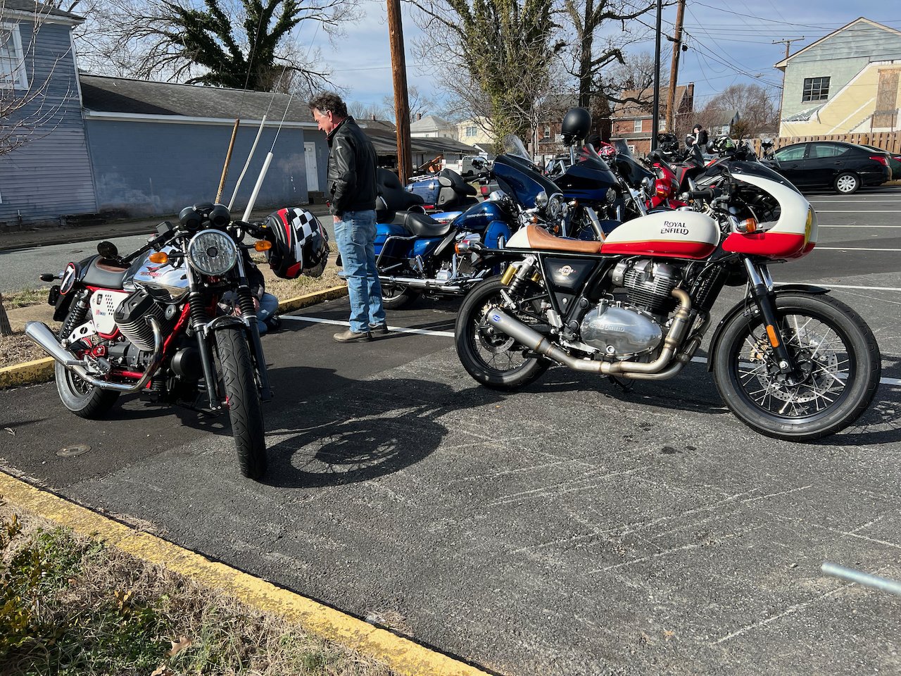 Bikes & Breakfast Fredericksburg started as a very chilly morning. Heading out, it was 33°, but when we got to Motorworks at 10 o’clock, it was well into the 40s. Motorworks was a great kick-off point for the new location as Brooke and Company had a breakfast snack available for everybody (Coffee, Donuts, and homemade marshmallows). After an hour or two, we rode out to our new location in Fredericksburg at Eats Burgers; this looks like an excellent selection for the new spot. The staff was very great. The food came out very fast, and the best part was the parking; lots for all the people who rode in from Lancaster, PA, to Virginia Beach and, of course, the locals from Fredericksburg.