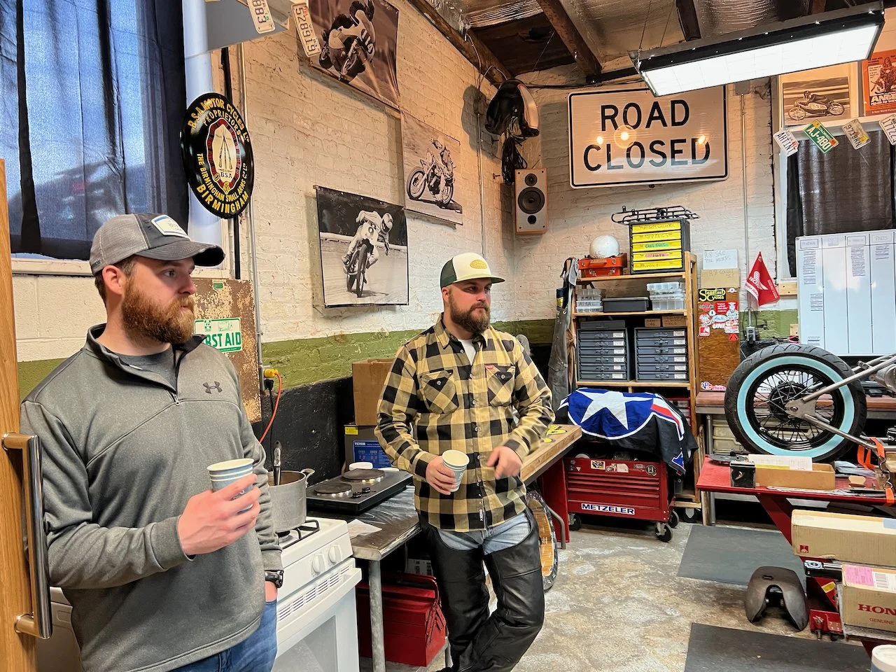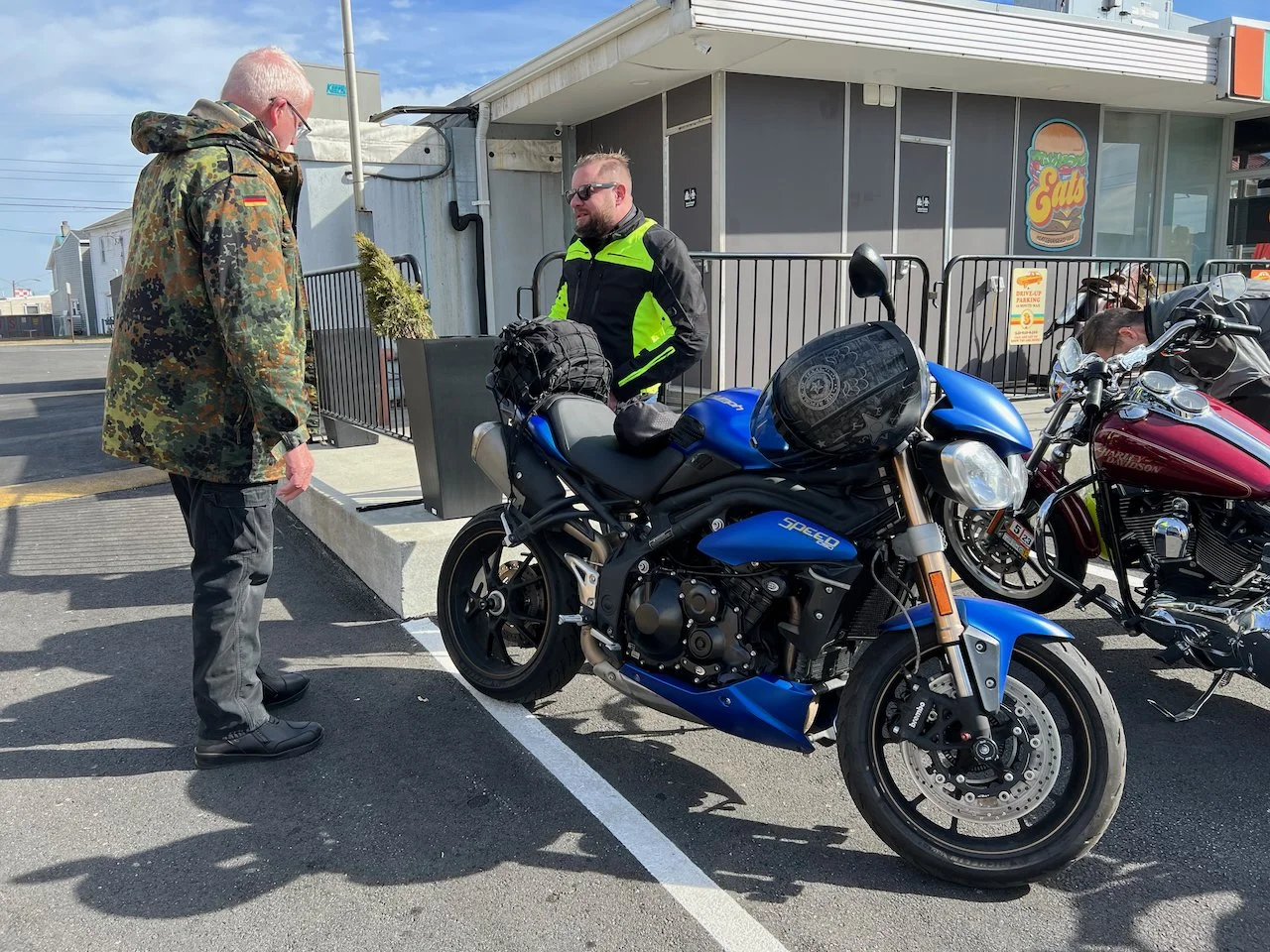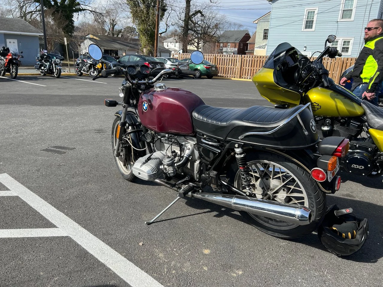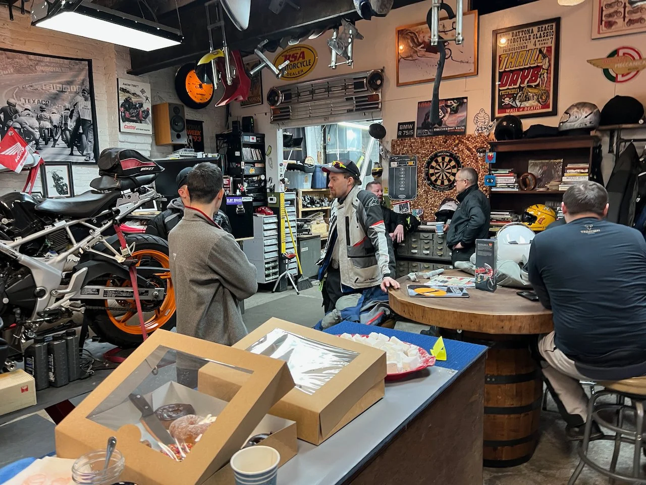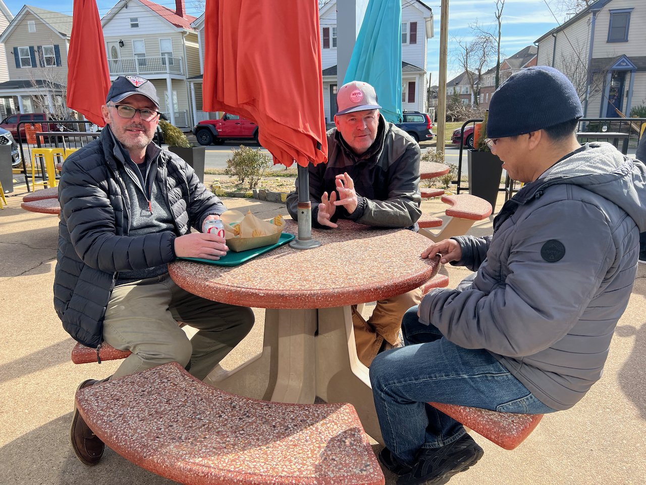Bikes & Breakfast Fredericksburg started as a very chilly morning. Heading out, it was 33°, but when we got to Motorworks at 10 o’clock, it was well into the 40s. Motorworks was a great kick-off point for the new location as Brooke and Company had a breakfast snack available for everybody (Coffee, Donuts, and homemade marshmallows). After an hour or two, we rode out to our new location in Fredericksburg at Eats Burgers; this looks like an excellent selection for the new spot. The staff was very great. The food came out very fast, and the best part was the parking; lots for all the people who rode in from Lancaster, PA, to Virginia Beach and, of course, the locals from Fredericksburg.